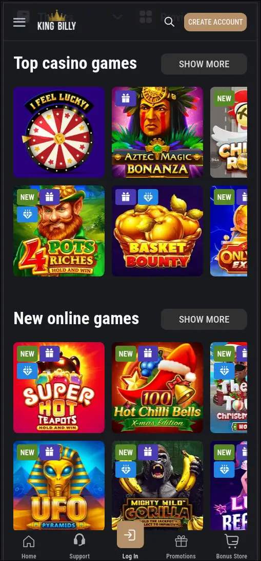 Play King Billy on Android with a secure app-style experience, or choose Instant Play in your mobile browser—same account, the games you love, and quick access to bonuses.