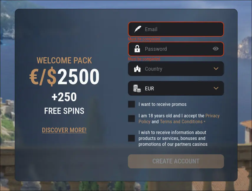 Add your email, create a strong password, and choose your preferred currency (AUD is often available).